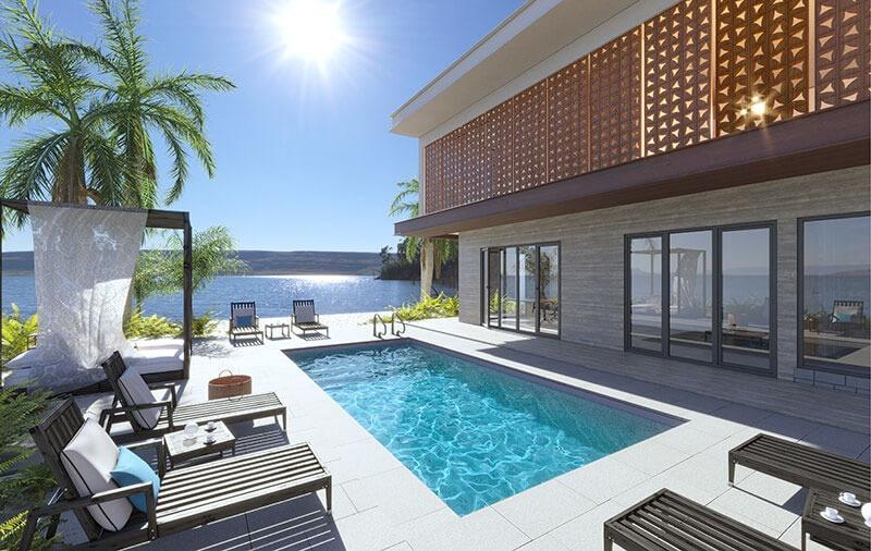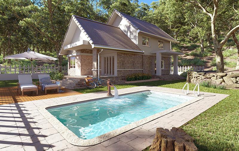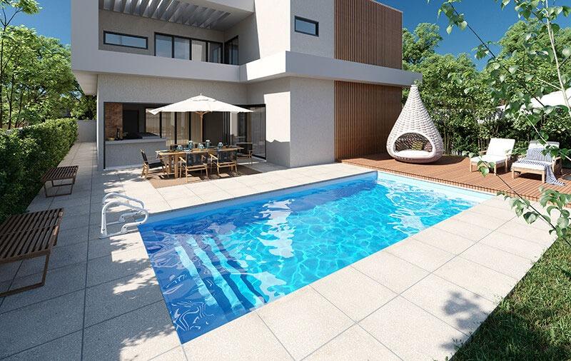 "The pool is one of the elements that adds the most value to a home's decor, and Aqua Menam B, a polyester pool with a traditional design, featuring a bench and stairs, will transform your space into a unique, modern, and innovative environment."