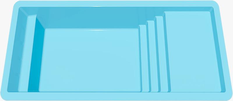 The Aqua Menam E pool features rectangular shapes with a shallow area, designed for better use of its space, and is also equipped with Atlas porcelain tiles on the pool's edges. The available sizes are 5m (without bench), 7m (without bench), 9m (with bench), and 10m (with bench) without tiles, and 5m (without bench), 7m (without bench), and 10m (with bench) with tiles on the edges.